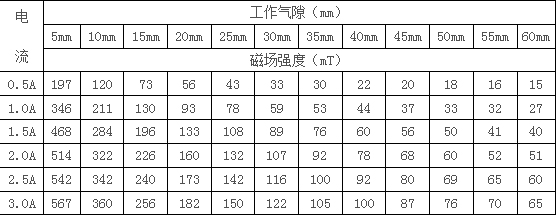 3.0、磁場參數(shù)表 (大于30毫米的磁場是拆卸后測試)